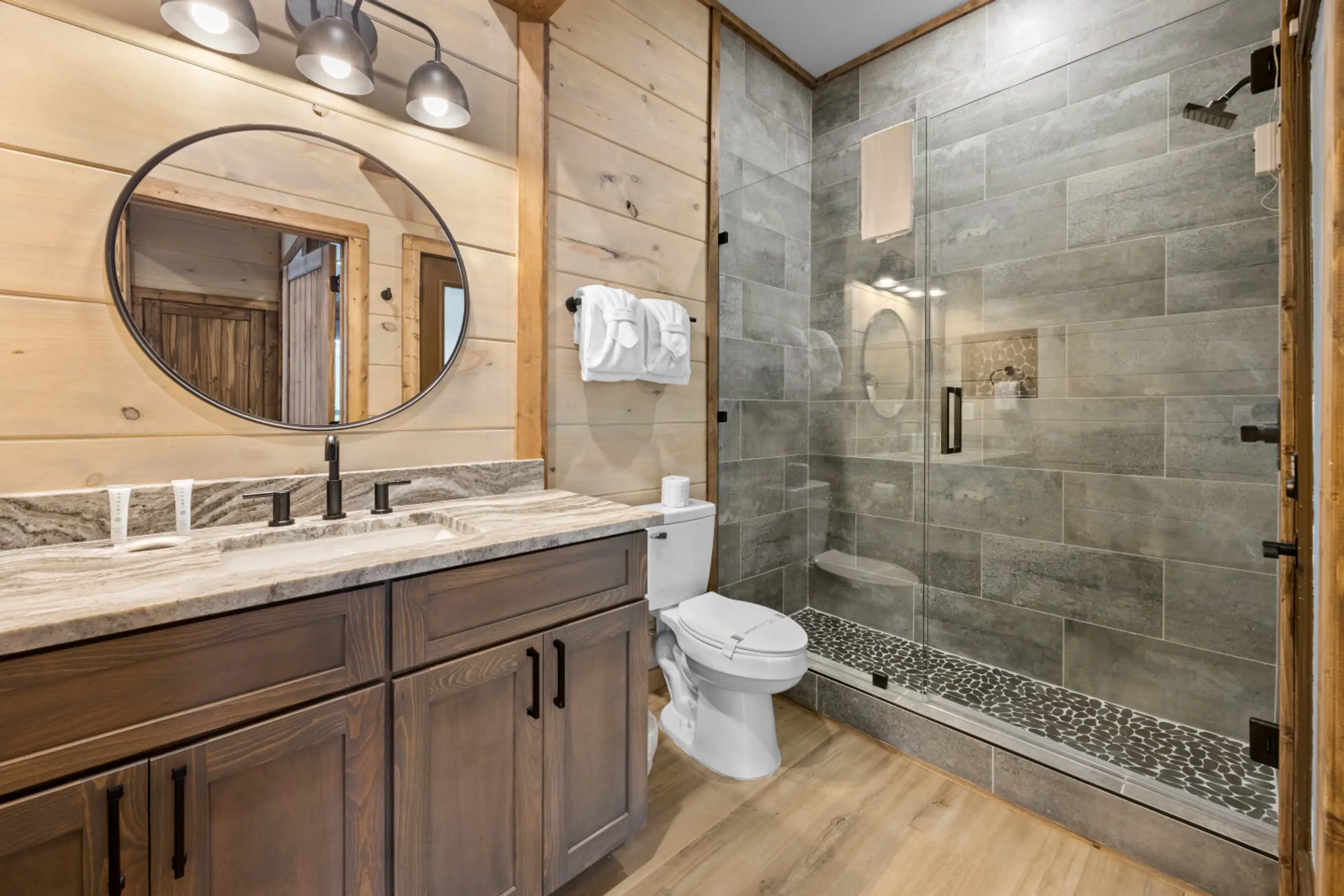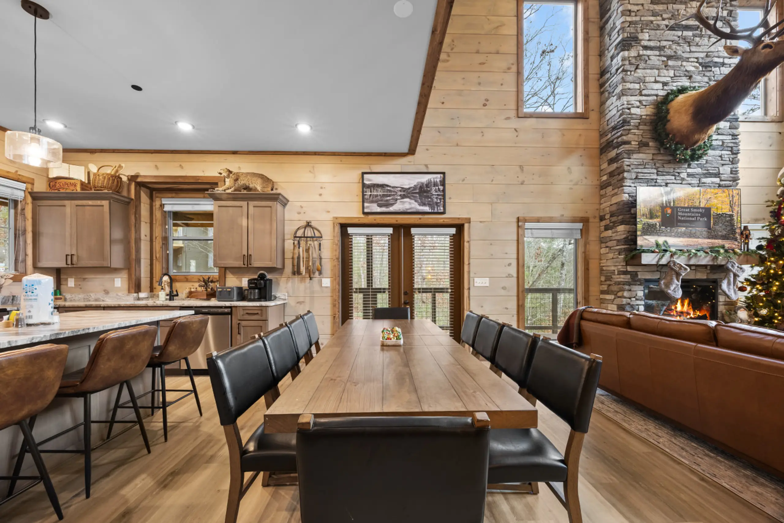 Read MoreEasy Stony Mountain Estate is a one-of-a-kind luxury cabin rental in the Smoky Mountains—a private, three-level retreat designed for families, reunions, retreats, and groups seeking an unforgettable mountain escape. Located in the prestigious gated community of The Preserve, this sprawling 5-bedroom, 6-bath home sleeps up to 14 guests and blends architectural beauty with premium amenities, peaceful wooded views, and all-day entertainment.