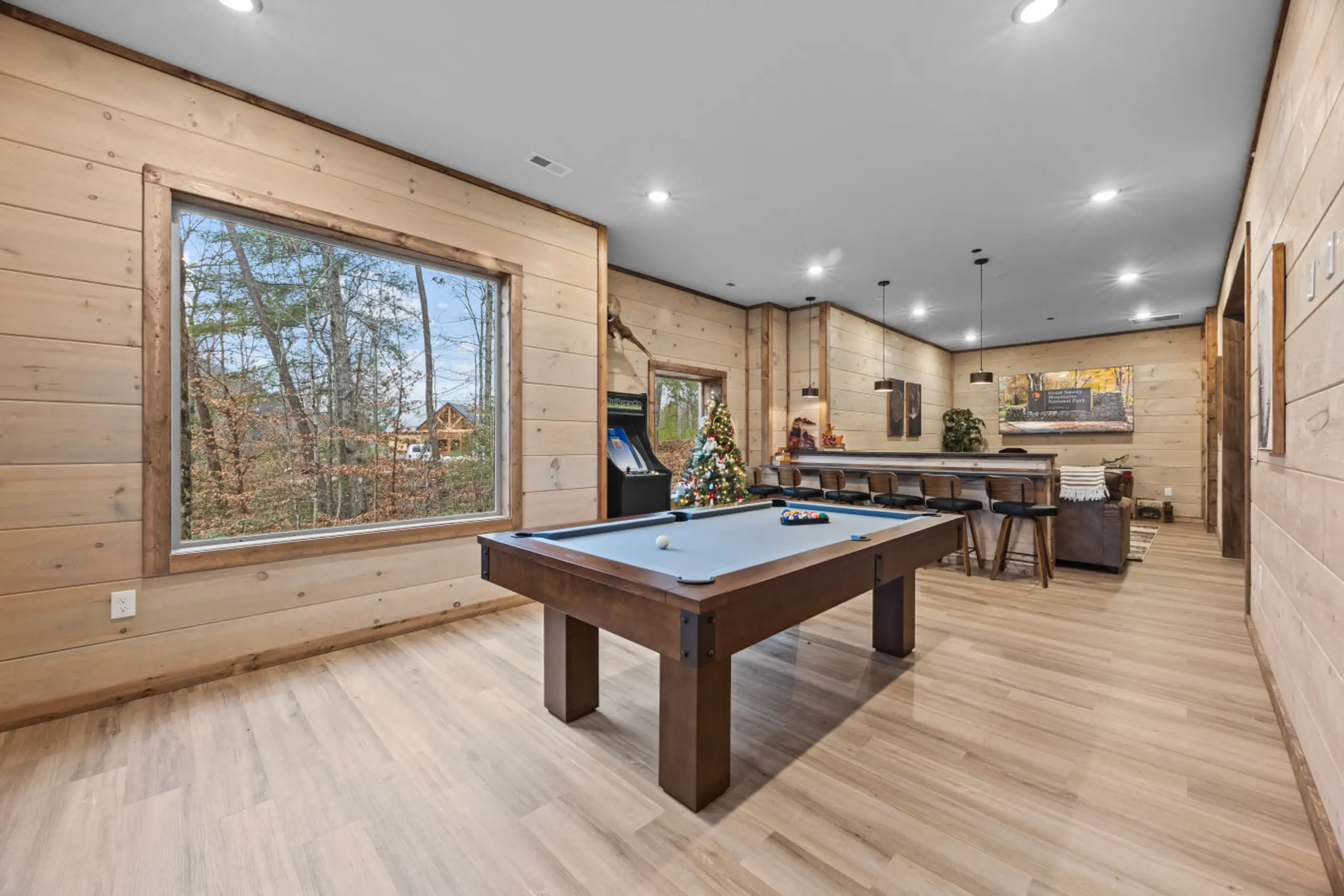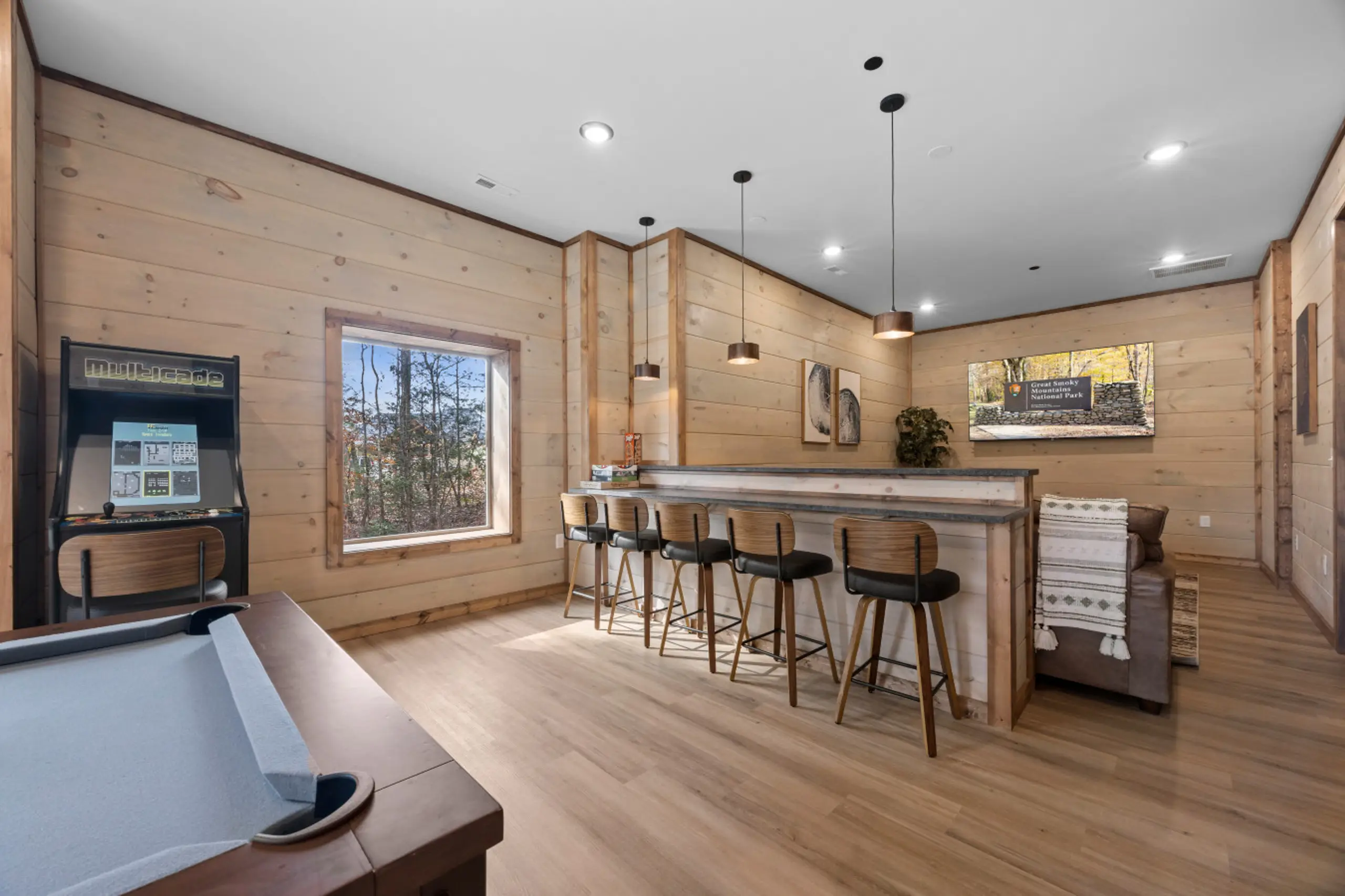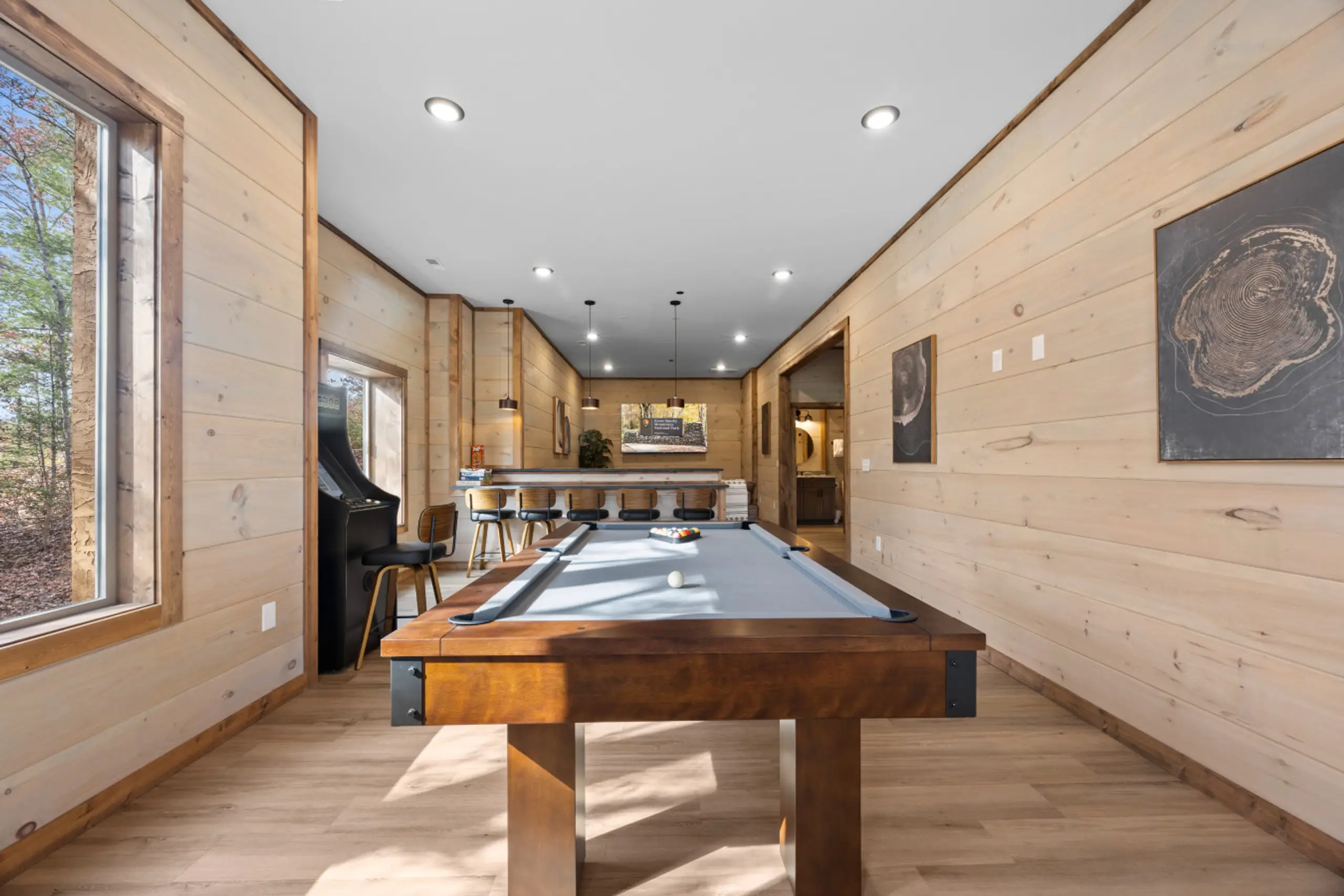 The game room is built for friendly competition and late-night fun, featuring: